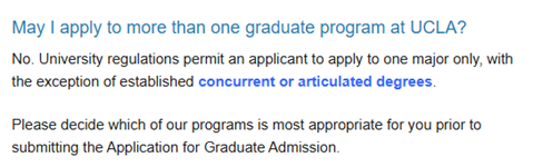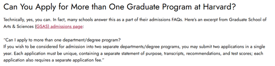 通常每位學生在一個學年內只能申請一個碩士program,但生命科學領域的 Ph.D. program,或者一個 Graduate Program(有名單限制) + 一個或多個 professional school program 除外。