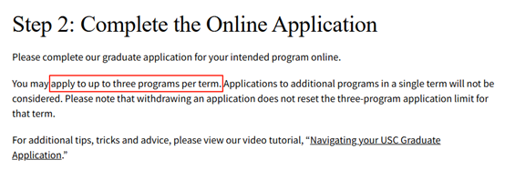 可在一份申請表上申請三個program,僅需支付學校一次申請費。