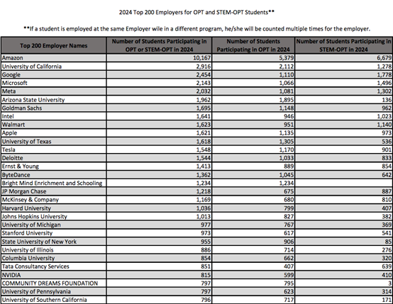 # 亞馬遜以10,167人位居第一,其中OPT學生5,379人,STEM-OPT學生6,679人;