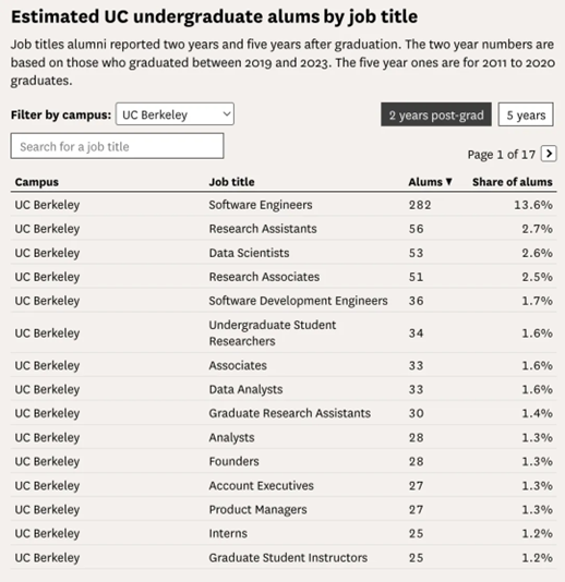 然而,在畢業兩年之際,加州大學校友們的職業發展狀況如何呢?
