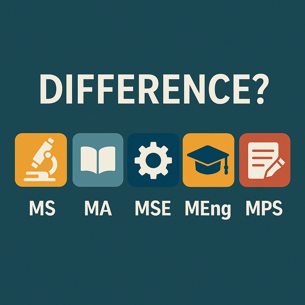 在申請美國研究所時,不少同學會被 “MS、MA、MSE、MEng、MPS” 等看似相似但實則不同的學位名稱困擾。學位主要反映了一個program的培養目標,是研究型還是授課型?是學術型還是就業型等等,當然不同學位的培養時間也是不同的。這些學位並非 “高低之分”,核心差異在於培養目標、授予單位與課程設計,適配不同職業規劃的學生。今天給大家系統整合了各類學位的核心資訊,幫同學清晰區分他們之間的不同點,以及自身該如何選擇適合自己的學位!